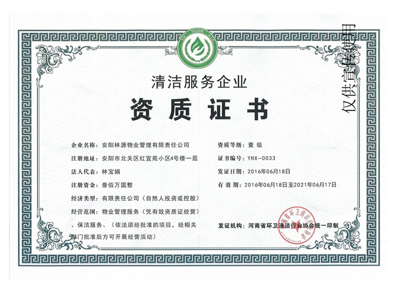 清潔服務(wù)企業(yè)資質(zhì)證書